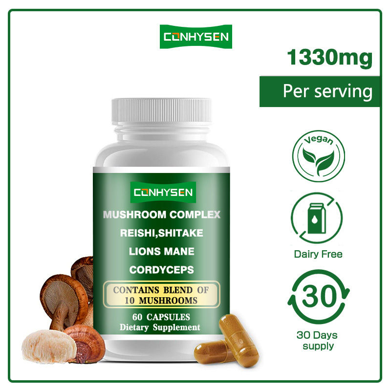 Les gélules de complexe de champignons sont un complément alimentaire scientifiquement formulé et raffiné à partir de divers champignons fonctionnels tels que le Reishi, le Shiitake, le mycélium de Lingzhi et le Tremella. Il intègre les précieux ingrédients actifs tels que les polysaccharides, les terpénoïdes, l'ergothionéine et les minéraux de ces champignons, agissant comme un réservoir de santé naturel qui offre une protection multidimensionnelle de la santé pour le corps humain.