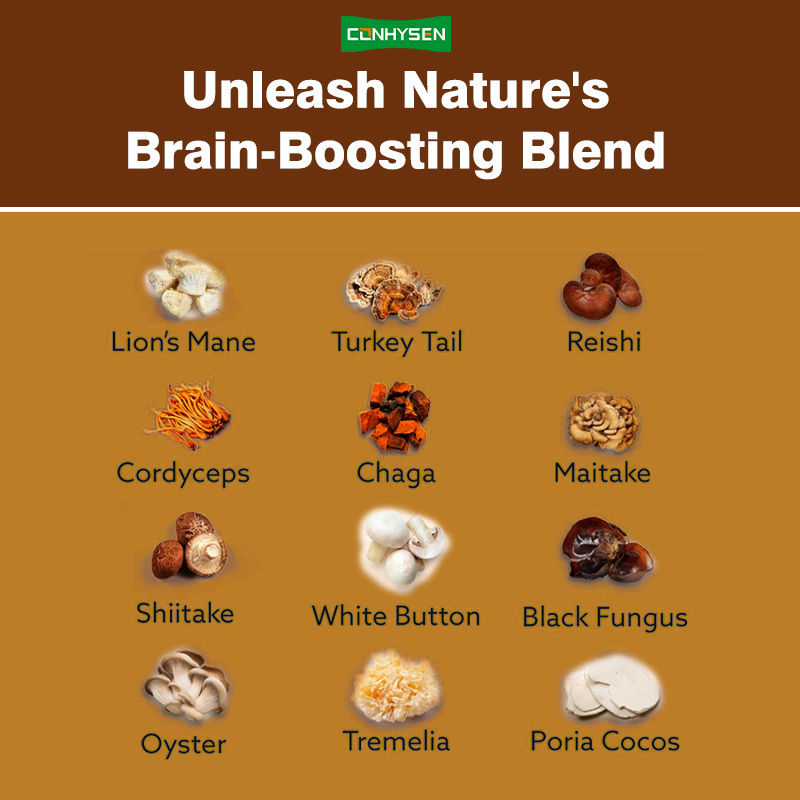 | Ingrédient principal | Cordyceps, reishi, shiitake, crinière de lion, queue de dinde, chaga | ||
