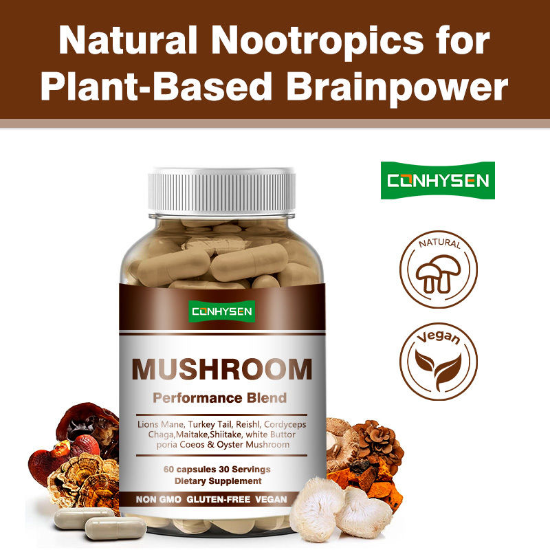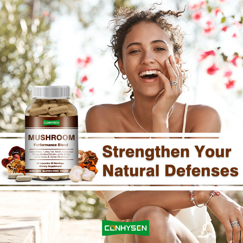 Produit d'origine/ODM Champignon mélange de performance Capsules Supplément Vrgan soutient les niveaux d'énergie