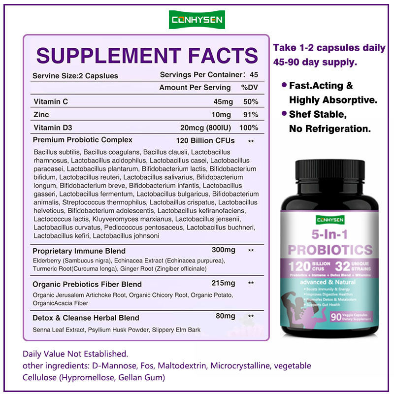 Gélules Prébiotiques 5-en-1 Marques Privées Favorisent la Détoxification et le Métabolisme Suppléments Probiotiques