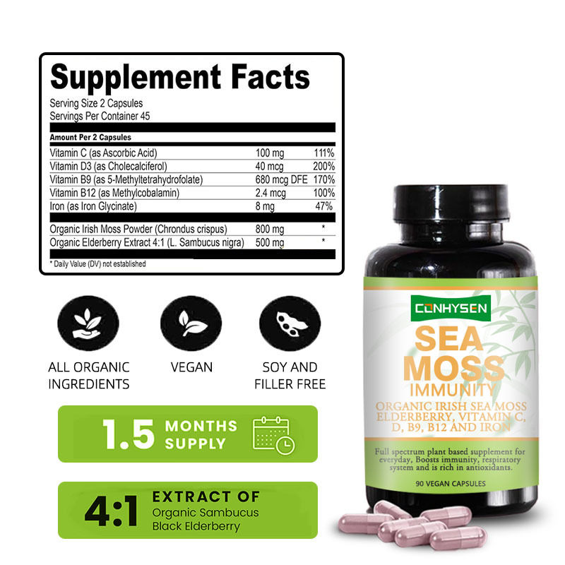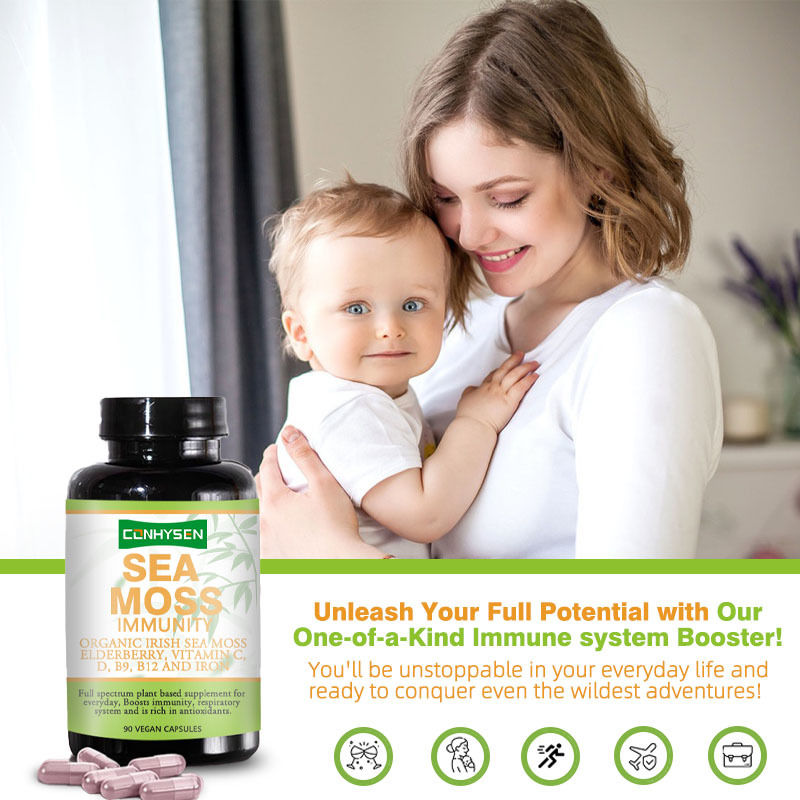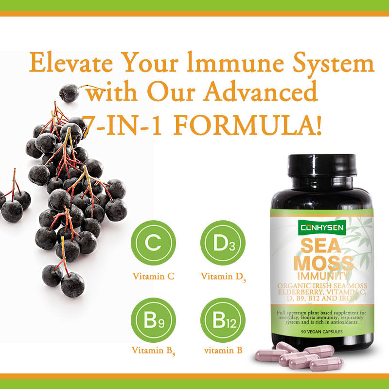 Étiquettes privées Mousse de mer Capsules avec vitamines de mûrier Élever le système immunitaire Capsules végétaliennes