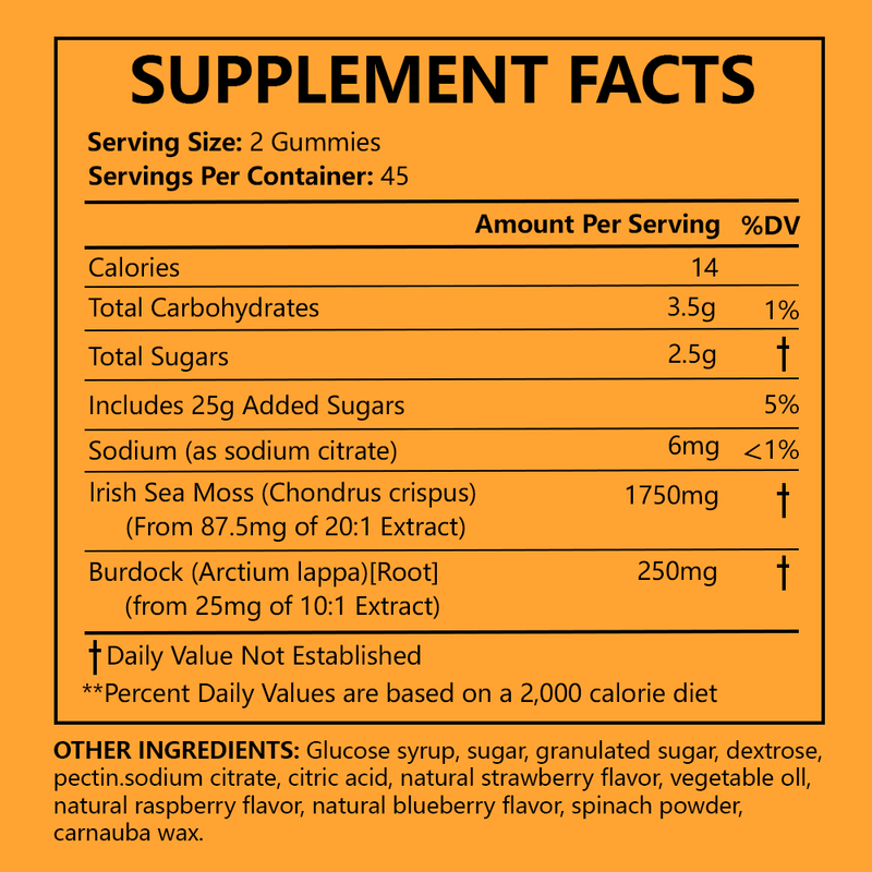 Gummies de mousse marine 3000mg avec bardane Améliorer l'immunité Détox OEM/ODM Personnalisé