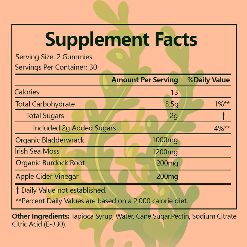 Mousse marine irlandaise, varech biologique, racine de bardane biologique, vinaigre de cidre de pomme