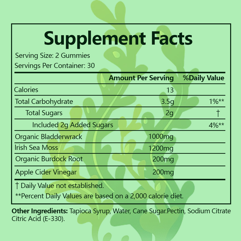 Mousse marine irlandaise, Varech biologique, Racine de bardane biologique, Vinaigre de cidre de pomme