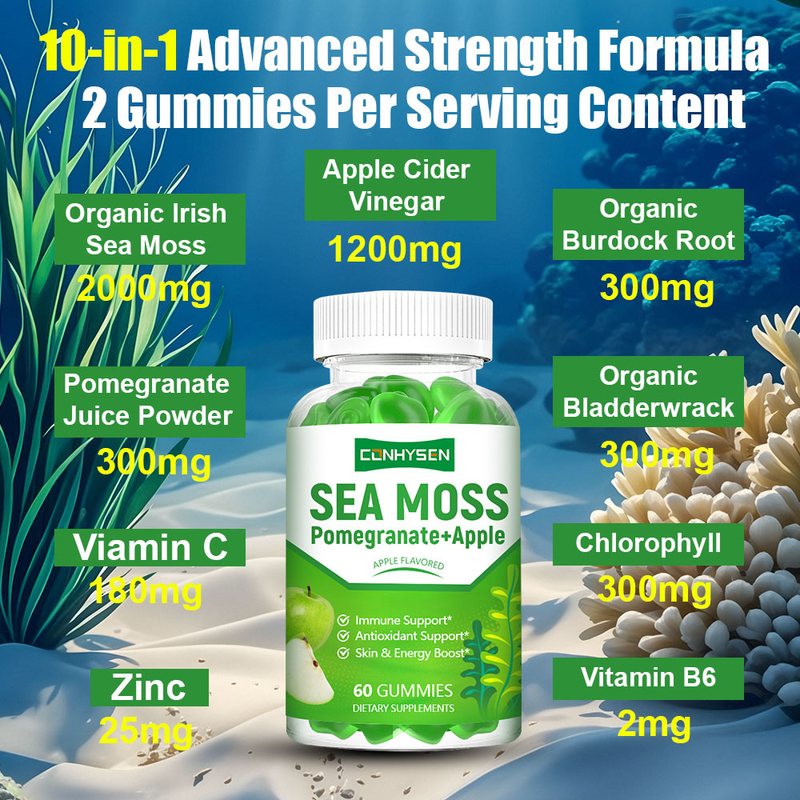 Gummies de mousse marine, pomme et grenade, soutiennent les antioxydants, OEM/ODM personnalisé