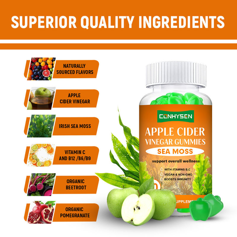Gummies de Vinaigre de Cidre de Pomme et de Mousse Marine Boostant les Propriétés Antioxydantes, Marque Personnalisée