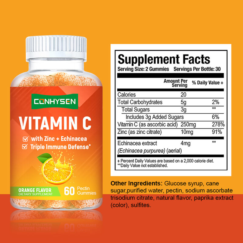 Vitamine C Pectine gomme à base de zinc OEM/ODM personnalisé Améliorer les niveaux d'énergie