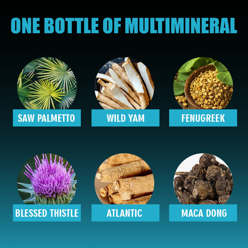 Saw Palmetto, igname sauvage, fenugrec, chardon béni, Atlantique, Maca Dong