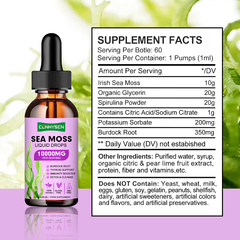 Gouttes liquides de mousse de mer biologiques personnalisées de qualité supérieure pour adultes, stimulant le métabolisme