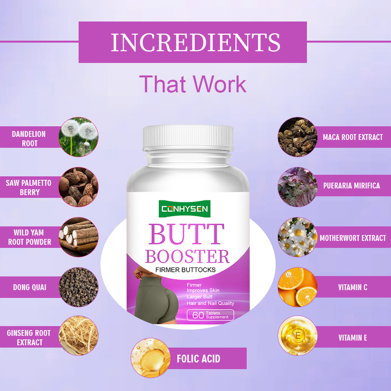 Butt Booster Tablets ne se concentre pas seulement sur la mise en forme des fesses, mais tient également compte de la santé et de la beauté en général.La société Guangdong Kangsheng Pharmaceutical Technology Co., Ltd. a été créée pour fournir des produits pharmaceutiques.Ces composants peuvent améliorer considérablement les extrémités sèches et fracturées des cheveux, les rendant plus lisses et brillantes; en même temps,Ils peuvent également améliorer la dureté des ongles., réduire le phénomène de clivage et de stratification, et rendre les ongles plus sains et plus forts.