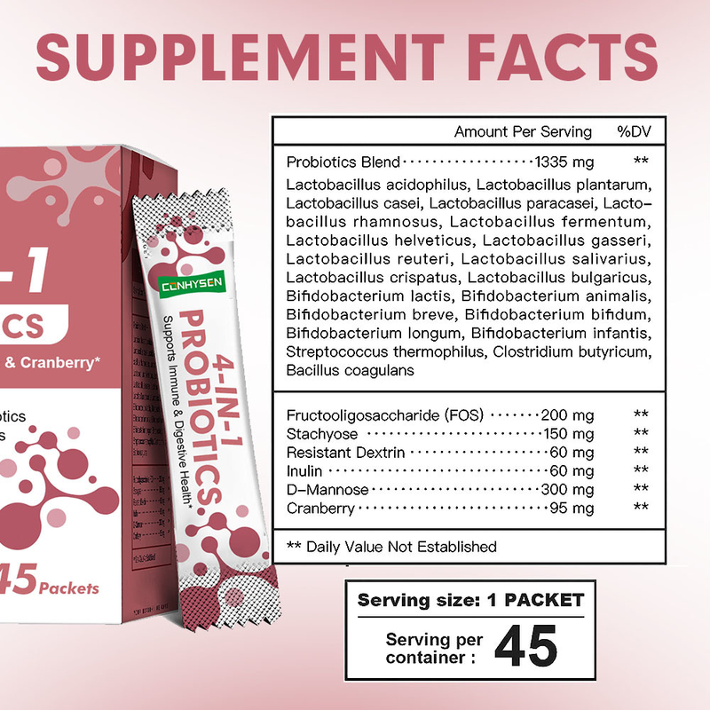 Mélange de probiotiques, FOS, Stachyose, Dextrine résistante, Inuline, D-Mannose, Canneberge