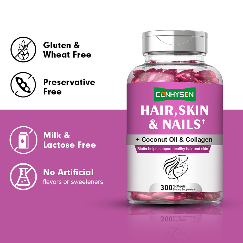 Hair Skin & Nails Softgels launched by Guangdong Kangsheng Pharmaceutical Technology Co., Ltd. uses scientific formulas and selects a variety of natural nutrients to provide comprehensive nourishment for hair, skin and nails. Each soft capsule is rich in core ingredients such as biotin, vitamin E, and vitamin C. These nutrients work together to help maintain healthy hair and shine, promote skin elasticity and shine, and enhance nail strength and toughness. Hair Skin & Nails Softgels are free of artificial colors and preservatives and are ideal for people seeking health and beauty.
