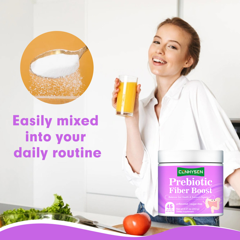 Notre mélange prébiotique spécialisé combine des fibres solubles provenant de plusieurs sources naturelles, y compris l'inuline de la racine de chicorée et le FOS, spécialement conçu pour traiter la constipation et les ballonnements.Des études cliniques ont démontré que cette formule unique augmente la fréquence des selles de 45% tout en réduisant l'inconfort des ballonnements grâce à des processus de fermentation optimisés..