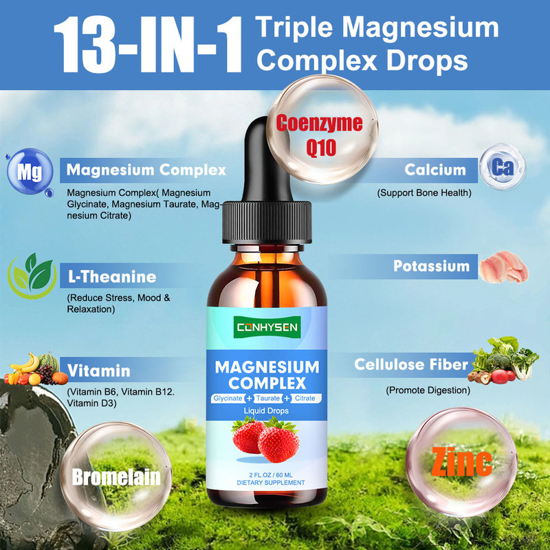 Triple Magnésium Complexe Gouttelettes liquides Glycinate Soutien musculaire et nerveux du sommeil en gros